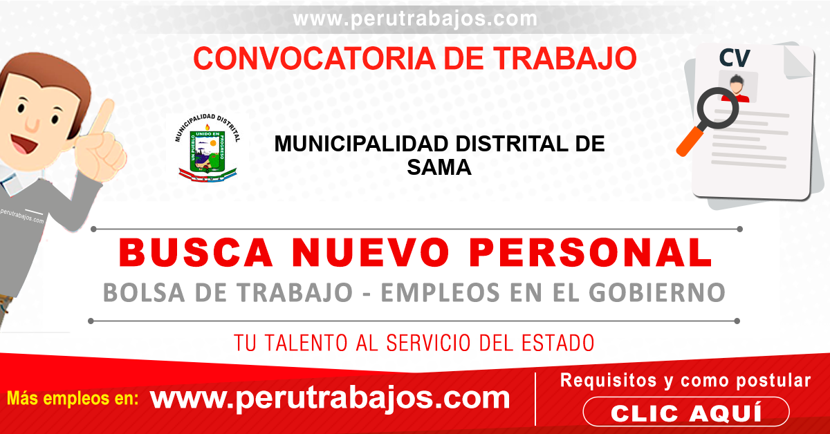 MUNICIPALIDAD DE SAMA requiere personal afines a las carreras de Administración, Ciencias de la comunicación, Derecho.