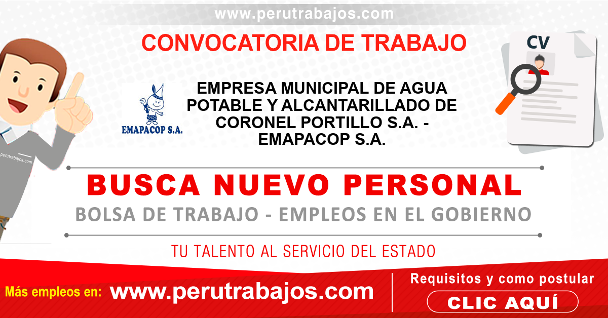 ¿Necesitas empleo? EMAPACOP S.A. requiere nuevo personal, revisa aquí los requisitos y como postular