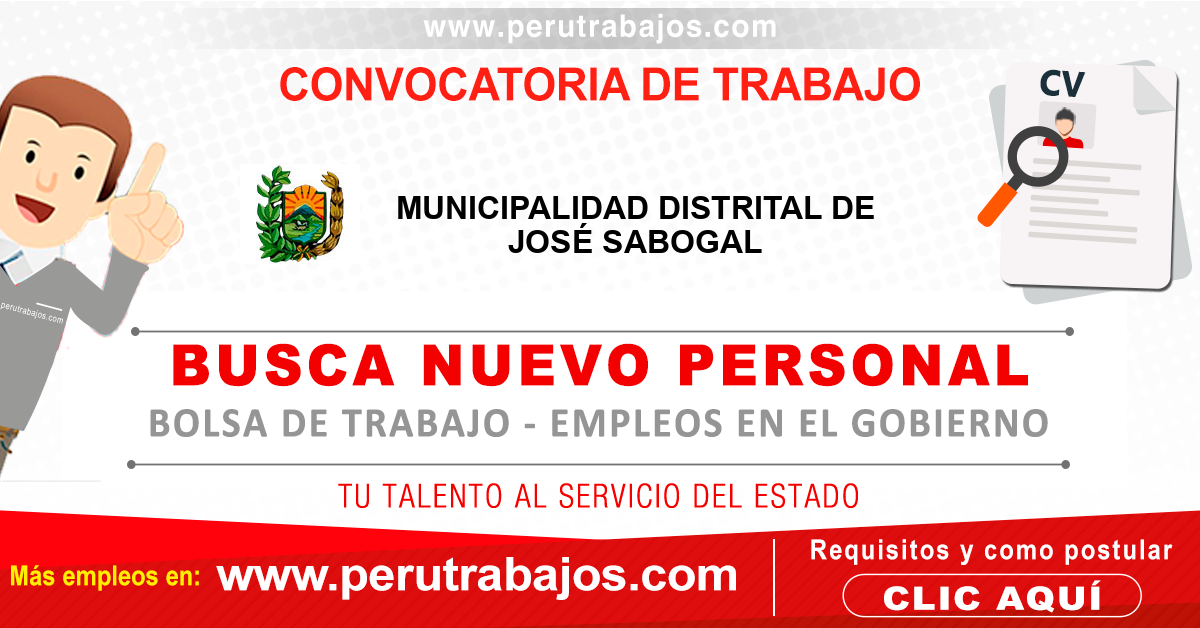 Aquí podrá revisar todas las convocatorias MUNICIPALIDAD DE JOSÉ SABOGAL 2026 y su bolsa de trabajo actualizado con nuevas oportunidades laborales.