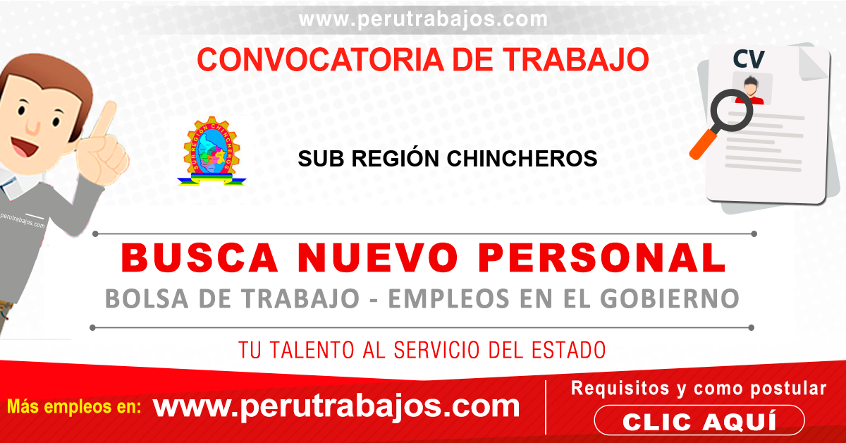 Aquí podrá revisar todas las convocatorias SUB REGIÓN CHINCHEROS 2026 y su bolsa de trabajo actualizado con nuevas oportunidades laborales.