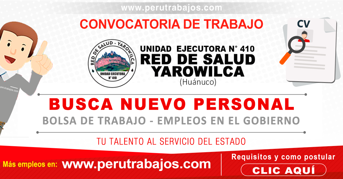Cuando esta institución(UNIDAD EJECUTORA N° 410 – RED DE SALUD YAROWILCA) realice un nuevo concurso público de personal, usted podrá informarse primero por esta página web.